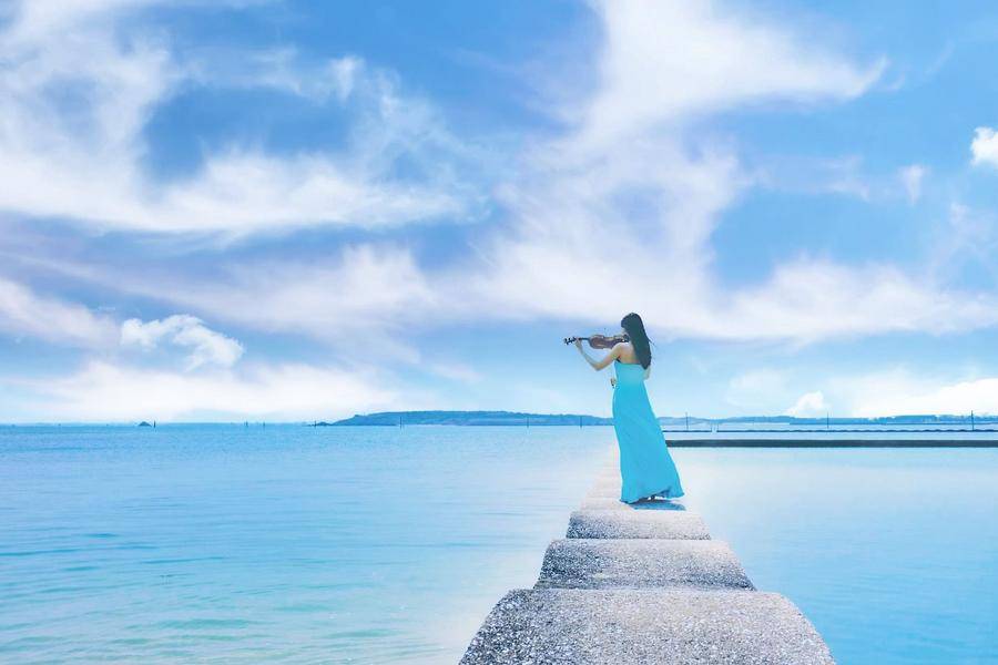 白色涼亭步道蜿蜒入海,漲潮時有種交錯漸層感的海色,宛如沉靜在馬爾地夫般~美麗❤️