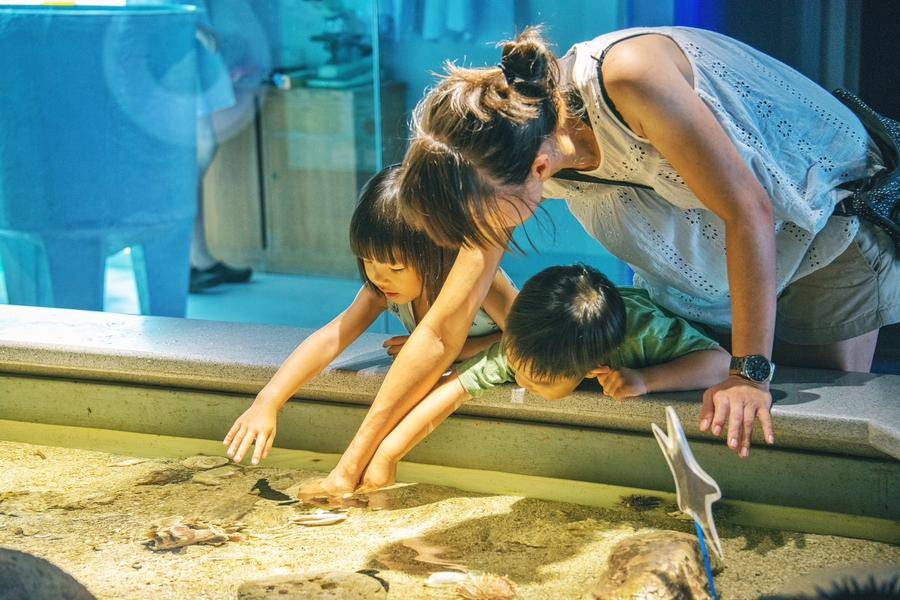 海洋藍色調,讓人一踏入澎湖水族館秒入海底世界,在這座水族館裡,你可以盡情欣賞魚兒悠遊,走進夢幻海底隧道,看大魟魚從頭頂上游過去。展示的水族則為以澎湖水族館所在地白沙鄉為中心,半徑800公里內之台灣海峽及南中國南海中的各式生物為主,澎湖水族館更是一座寓教於樂且功能完善的水族館。