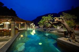 結合山林、溫泉、建築及人文的時尚度假會館,位於泰安溫泉風景區泰安橋汶水溪旁,週邊景色賞心悅目,兩側高山翠綠挺拔,青山綠水美不勝收。會館共有66個房間,分為28種房型,每一個房間內都各自獨立擁有衛浴空間、泡湯SPA空間及床鋪空間,乾濕分離,在機能上看起來是各自分離,在方便性上卻又是三合一連貫組合,是一間外曠內細、自然原始、人文時尚和諧共融的『設計會館』。