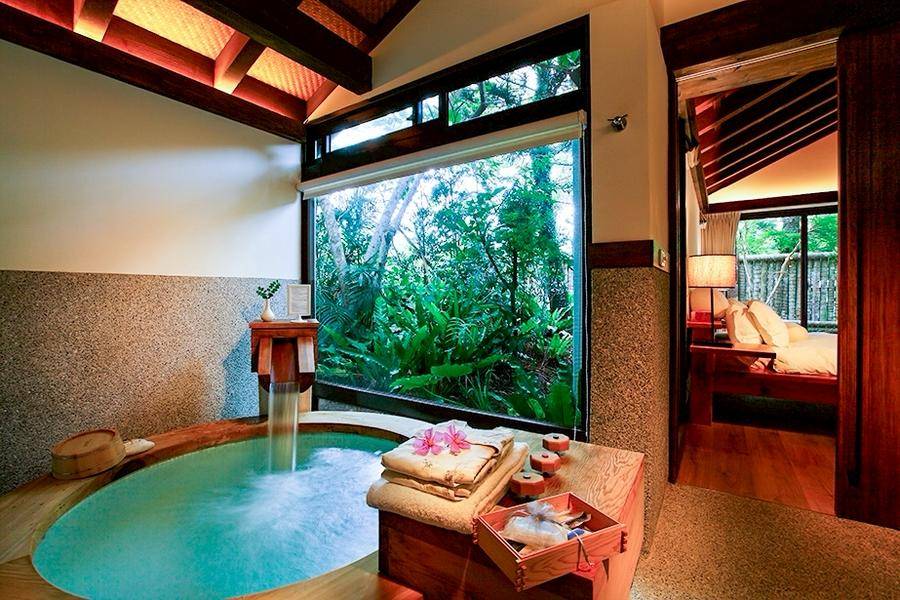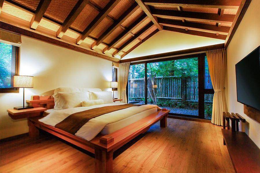 和風臥房、室內檜木風呂、戶外原石風呂、獨立景觀庭園。
