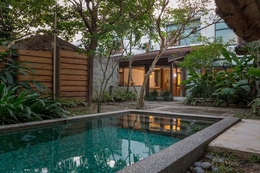 主臥室、起居室、談心榻、室內檜木風呂、戶外原石風呂、 花園泳池、池畔發呆亭、獨立景觀庭園