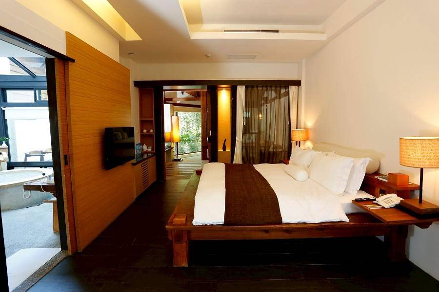 尋通往夢境的擺渡口,覓武陵古老傳說中的桃花源。旭海牡丹灣,潛藏質樸的完美。獨棟Villa沿著頭目湖而建,上萬株植栽作為點綴,綠意與遠方山頭連成一氣,來到牡丹灣,不論是在室內湯池享受熱氣蒸騰的溫暖,抑或是步入室外湯池,感受野溪溫泉獨有的自然冷暖暢快,都是「溫泉水滑洗凝脂」的貴妃享受。(園內有簡易釣竿跟魚飼料, 讓賓客可感受一下釣魚的樂趣)
