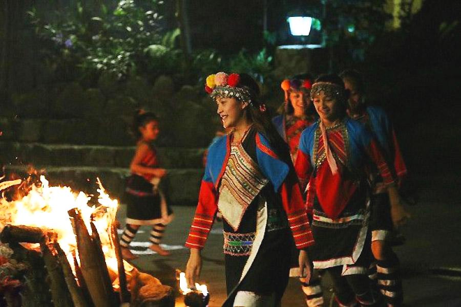 營火晚會(穿著原住民服裝射箭點火)君同歡樂(鄒族原住民歌曲.舞蹈教唱)、鄒的文化饗宴、文物及服飾介紹、聆聽鄒族的愛情.傳統歌曲、創作歌曲、哈莫瓦那舞團表演、勇士舞。讓您駭翻天!!