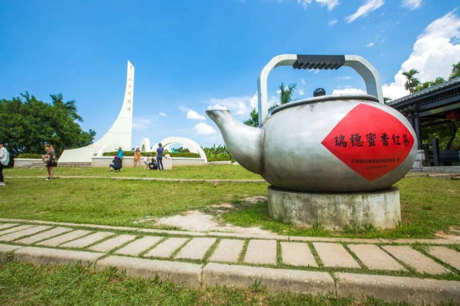 北回歸線標誌公園位在瑞穗舞鶴台地,白色日晷造型的北回歸線標誌,是旅客經過舞鶴台地時必拍照的景點。