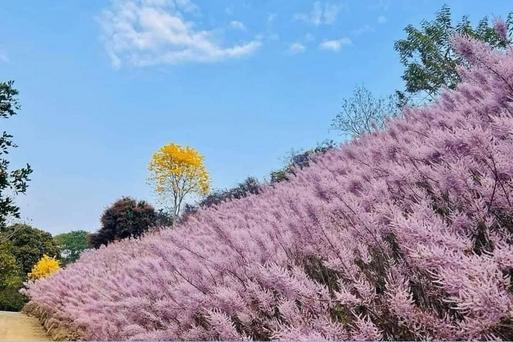 麝香木秘境位於南投縣中寮鄉的瑰蜜甜心玫瑰園,這片花園由三位熱愛植物的兄弟所精心打造。首次開放時便吸引了眾多遊客前來朝聖。這裡的山坡上,種植著比人還高的麝香木,佔地約三千坪,除了麝香木之外,還有風鈴木等植栽點綴其中,鮮豔的嫩黃色在粉紅色的山丘上顯得格外耀眼。