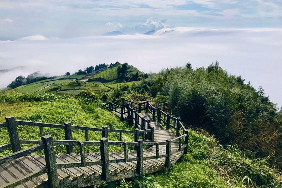 入口位於台18線53.5K公路旁,入口即有觀景平台,步道約1150公尺,約60分鐘,是個輕鬆好走的悠閒步道,途中以枕木階梯居多,就是木棧道,堪稱五星級步道。偶會經過一些小徑,上面多處設有涼亭可以休息,算是個滿輕鬆的步道,步道途中經過超美的高山茶園堪稱網美必訪美拍景點!