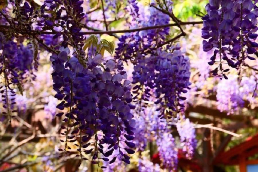嘉義縣梅山鄉瑞里村是阿里山北道的重要旅遊景點,海拔約1,000公尺,166線道約60公里處起,沿線都開欣賞紫藤花開,環境純淨無汙染,適合紫藤生長,1930年便從日本引進紫藤,每年春初3月,優雅的紫藤花在瑞里陸續綻放,一串串紫藤花如風鈴懸掛在空中,如串串紫色浪漫風鈴點綴在山城之中,彷彿其花語「醉人的戀情、依依的思念」般,隨風搖曳、美不勝收。