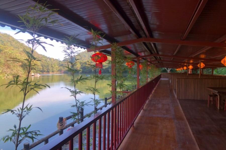 窗外格柵挑動光影明暗於空間跳動,厚實木質堆疊構築而成的燈箱環繞其中,華燈初上,儷人絮影。暖鍋煙霧細細飛竄雲起霧理間,饕餮盛宴就此展開。