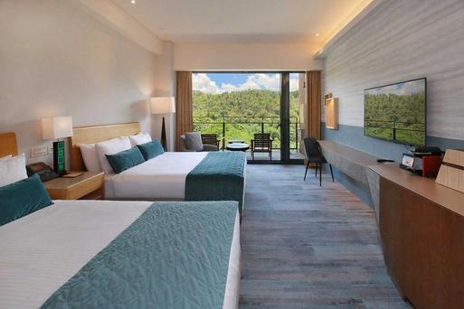 客房設備:崁入式大理石溫泉浴池、可調控空調系統、40吋液晶電視及虛擬管家影音系統、冰箱迷你吧、電子體重計、免治馬桶、吹風機、熱飲電壺、IP Phone觸控電話、膠囊咖啡機、保險箱及網際網路服務等設備