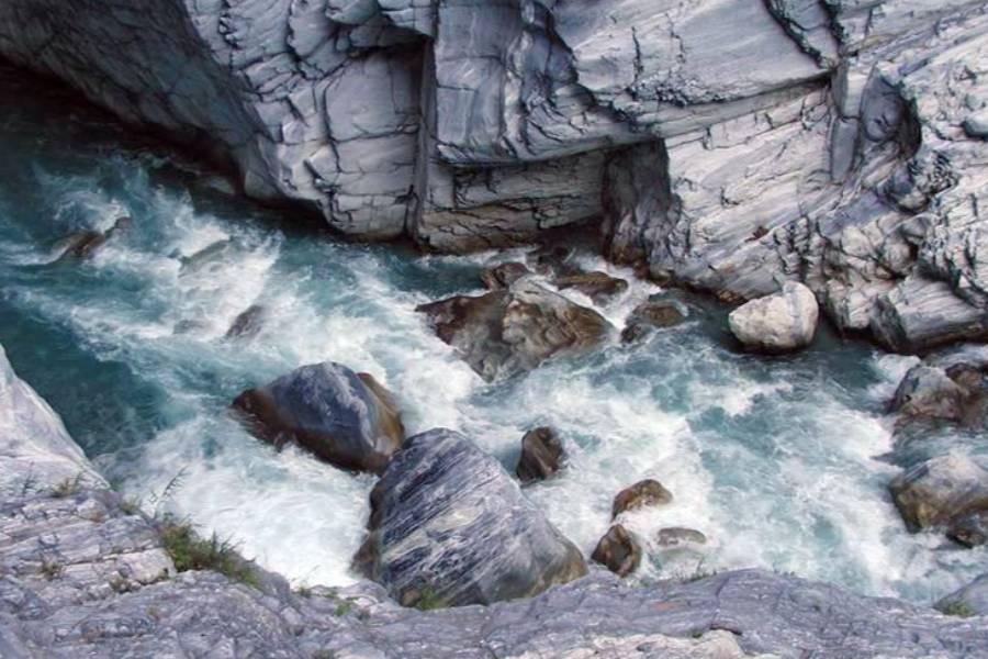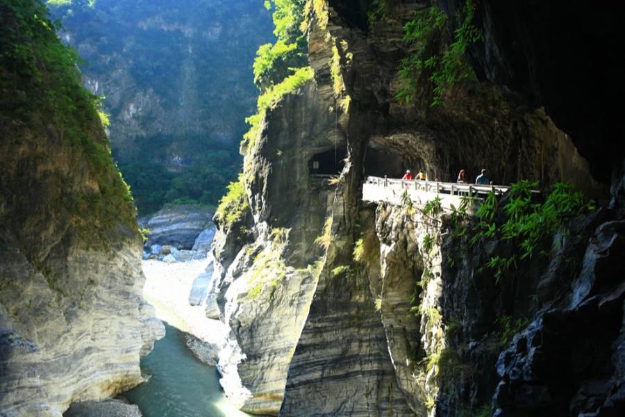 是太魯閣峽谷最精華的路段之一,步道全長700公尺,需原路折返。步道緊倚著高山深壑,向下俯瞰則是急湍的立霧溪水,兩岸山壁緊峙,鬼斧神工與險峻的地勢令人讚嘆震懾。 除了峽谷之外,大理岩壁上的斷層、節理、褶皺等地形,以及在峭壁上絕地逢生的岩生植物,都是值得觀察的重點。九曲洞步道路面寬闊平緩是一條大眾化的遊憩步道,和戶外地質教室。