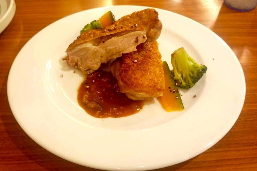 精心安排位上排餐+自助吧的完美組合。主餐可從香煎雞排、金黃魚排、嫩煎豬排三款中任選一道,每一份都以恰到好處的火侯呈現鮮嫩口感,熱騰騰上桌更顯質感與滿足。搭配旁邊豐富多樣的自助吧,沙拉、熱食、湯品、麵包與甜點一應俱全,讓旅客在輕鬆愜意的氛圍裡自由取用、吃得更盡興。