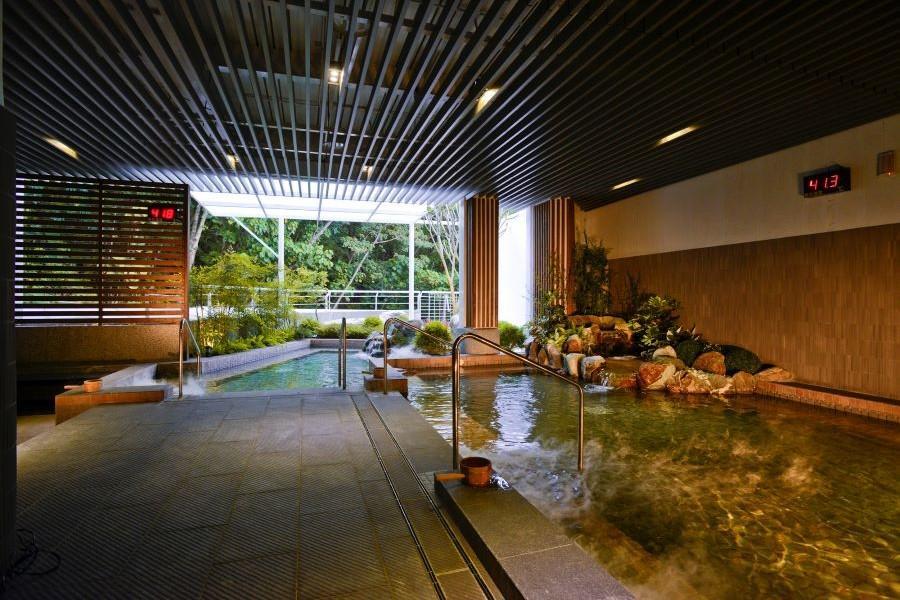 場內設施:室內池、冷水池、戶外露天風呂、烤箱、蒸氣室、寄物櫃、更衣室、修容區、休息區。