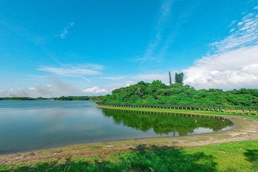 因湖畔有著供奉著南海觀世音菩薩的普陀禪寺,讓這片碧波湖水有了小南海的稱呼。橫亙的小南海吊橋,銜接了禪寺與生態公園,形成全長約5公里兼具散步與單車的環湖賞景步道,兩側林木綠鬱,即使是夏季前來,在步道中因為樹蔭還是會感覺陰涼舒爽,樹與水的自然循環也讓此處空氣純淨有如南海仙境,蓮花季時週邊田野布滿了滿開的蓮花,也是白河賞蓮的重要區域之一,加上近年T-BIKE自行車租賃點的設立,更讓原本就很受歡迎的自行車道變得更加熱鬧,小南海外環也規劃了完善的環潭自行車道,可前往白河賞蓮、林初埤賞木棉、或烏樹林等地,串聯週邊景點的自行車道也興起此處一股低碳單車旅行的風潮,是運動與休閒兼具的風景區。