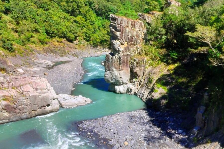 白石溪與泰崗溪交匯處,矗立著跨越千萬年的軍艦岩,歲月雕琢出宛如即將揚帆的輪廓,靜靜訴說歷史洪流的痕跡。若想一覽這座巨岩的全景,最美的角度便是走上距岩體約50公尺的軍艦岩吊橋。吊橋於2015年完工,全長60公尺,懸掛於溪谷之上,微風拂面,溪水輕拍岩石,光影交錯間,岩體雄偉而靜謐。漫步其上,既能感受大自然的磅礡氣息,也彷彿與時間對話,將每一個瞬間收進心裡,成為難忘的山林記憶。