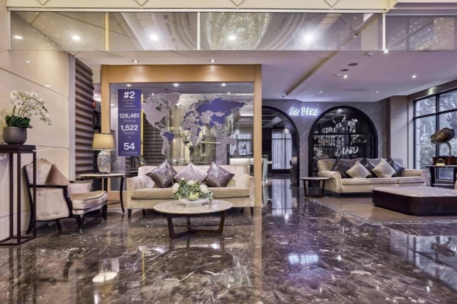 苗栗馥藝金鬱金香飯店為苗栗縣首屈一指的國際品牌星級觀光飯店,坐落於竹南鎮,以華麗的巴洛克式建築外觀成為當地著名地標。飯店宛如歐洲宮殿般典雅瑰麗,大廳以金碧輝煌的挑高設計與明亮採光,營造出寬敞舒適的迎賓氛圍。旅人可於此欣賞巨幅歐洲中古世紀畫作〈愛的花園〉,感受藝術之美與浪漫情懷,畫作主題呼應飯店所營造的貴族式歡愉氛圍,展現古典與現代交融的獨特風采。整體空間不僅彰顯高雅品味,更以細緻的設計與溫馨服務,為每位旅客打造尊榮而難忘的住宿體驗。