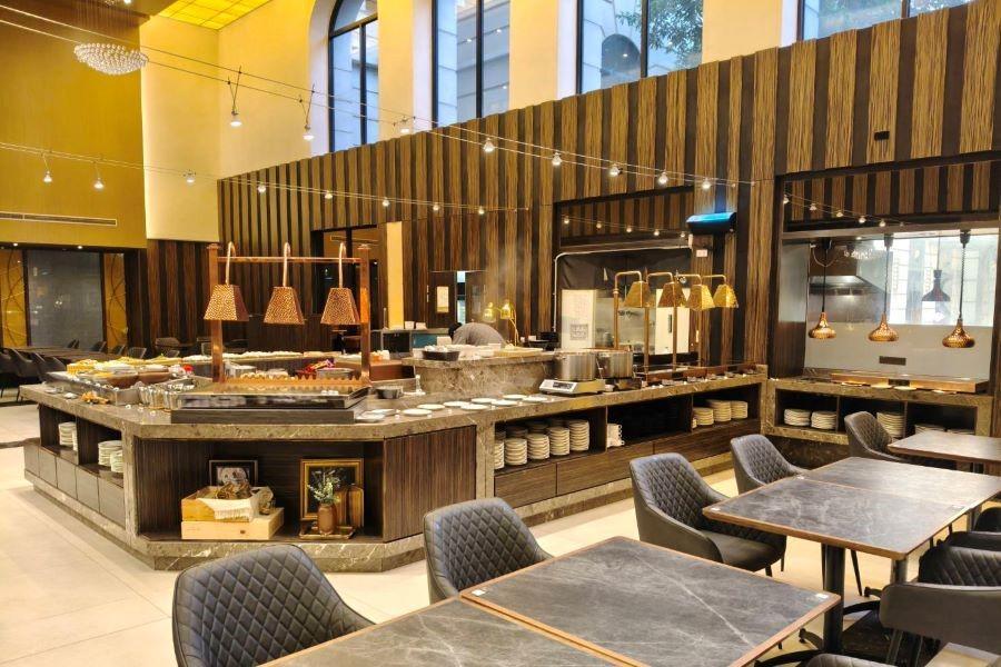 位於飯店一樓的餐廳,提供豐富自助百匯,包括沙拉、點心、熱食及各式飲品,滿足多樣味蕾享受。用餐時間為每日06:30至09:30,寬敞舒適的空間可同時容納110位賓客,讓您在明亮愜意的氛圍中開啟美好早晨。