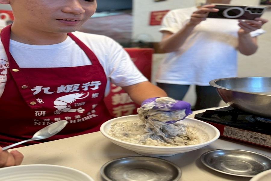 九蝦行爲「全台唯一專注 100% 純蝦製作的健康蝦食職人」一顆蝦丸內含九隻蝦,九蝦行只給你真材實料的健康純蝦