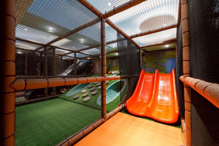 和逸飯店.台南西門館最受矚目的奇趣操場全面升級,隨處可見卡通頻道中超人氣的探險活寶、飛天小女警與熊熊遇見你三部卡通中的明星們! 位於4樓佔地500坪的親子共遊樂園中,包括和逸愛嘟嘟小火車、熊熊遇見你火車站、探險活寶歷險區、小女警沙池、飆風電動車、沁涼噴泉池等各項遊樂設施,讓全家大小皆可浸沐於台南熱情的陽光,與卡通明星們創造歡樂無限的出遊時刻。本場所設施經國家CNS17020認證檢驗機構,開立具認證標誌之合格檢驗報告,敬請安心使用。
