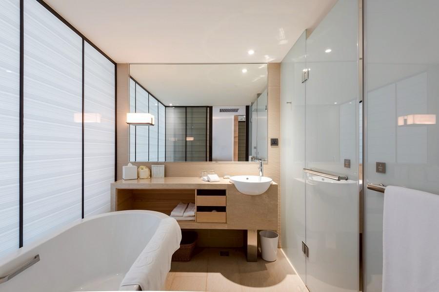 和逸客房乾濕分離的衛浴設備配有獨立浴缸,舒緩您整天的辛勞疲憊。寬敞空間適合偕同伴侶入住,同時享受獨處與兩人時光,也符合需要更自在工作空間的商務旅客需求。