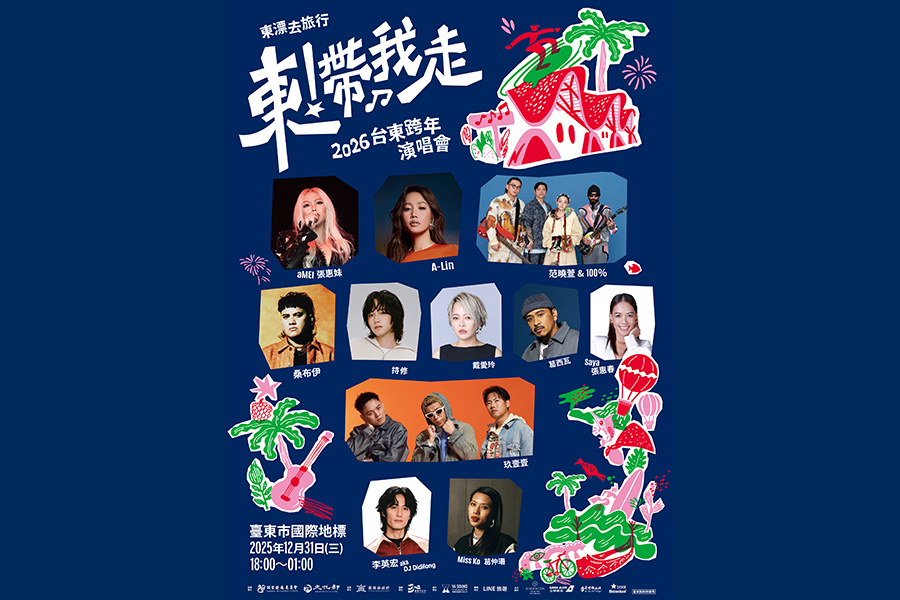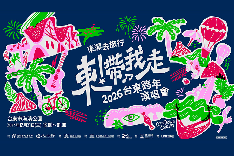 迎接 2026 年,就到海風徐徐的東海岸——參加「台東市國際地標」舉辦的2026台東跨年晚會《東!帶我走》,從2025年 12/31 18:00 唱到2026年 01:00。主舞台由天后 張惠妹 回鄉壓軸,並攜手 A-Lin、玖壹壹、范曉萱&100%、李英宏等 10+ 組金曲/金馬級歌手,跨界涵蓋原住民、嘻哈、流行、靈魂等多種曲風。