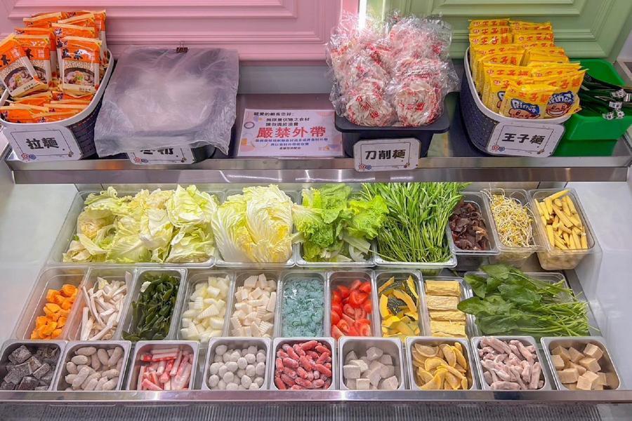 ●配料自助吧-蔬菜樣式多,誠意感滿滿,火鍋料您愛吃的都準備好了