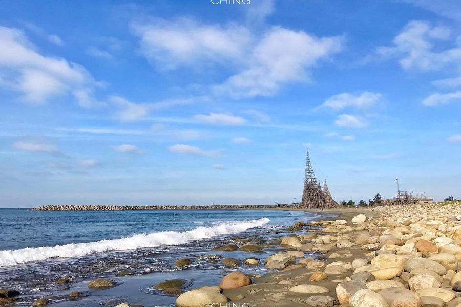月牙灣位於台南市安平區的漁光島北側,是一處以自然、靜謐著稱的海灣。因沿岸呈現優美弧形,外觀如同新月般柔和,因此得名「月牙灣」。照片來源IG@wangjenching提供