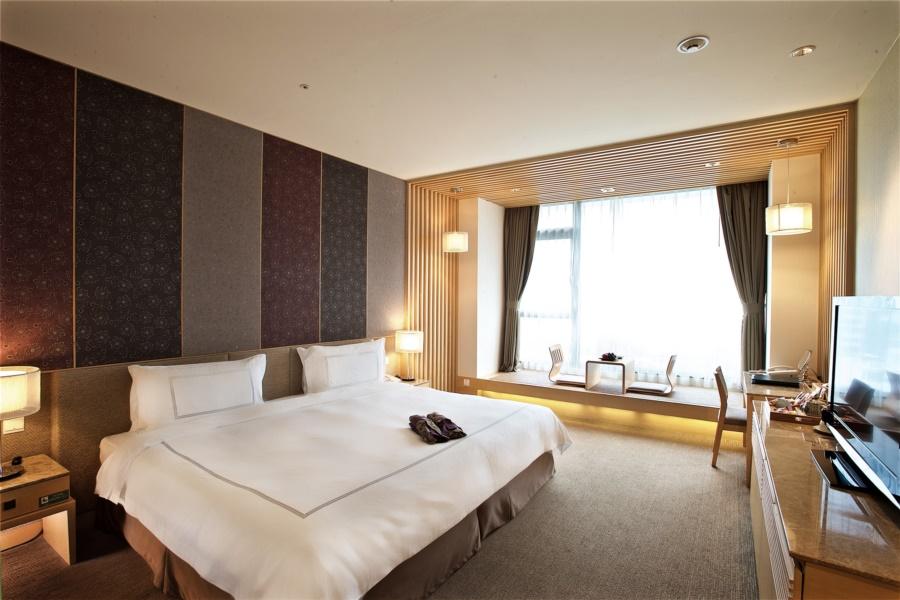 位於酒店6-9樓,12坪寬敞的空間設計,配置一大床或兩小床的房型選擇。客房落地窗旁更安排舒適座位區,讓您愜意與好友話家常。