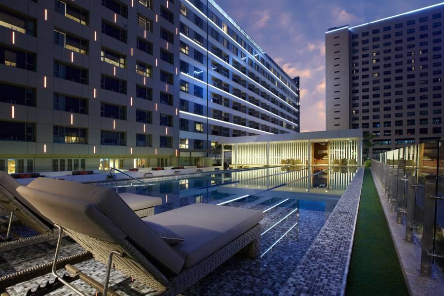 在露天泳池悠閒地享受藍天陽光,府城市景映入眼簾,自在怡然。恆溫控制的泳池全年都能盡情地使用。一樓的ROBIN’S餐廳源自日本的鐵板燒文化 ,主廚團隊嚴選當季珍饈 ,透過精湛烹飪手法呈現食材純粹本味。承襲日式料理的匠心工藝,融入多國風味巧思,搭配精緻器皿與藝術擺盤,演繹豐富多層次料理盛宴。