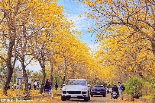 太保市朴子溪堤防是嘉義境內最知名且規模最大的黃金風鈴木隧道了,種植綿延1公里多的黃花風鈴木,有「黃金大道」之美譽。