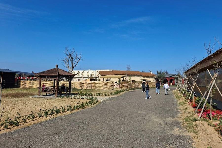 右圖:以傳統農業建築土角厝,包含雞寮、豬舍、菜園等設施,結合農村風貌與景觀設計,提供遊客了解過去農業生活方式。