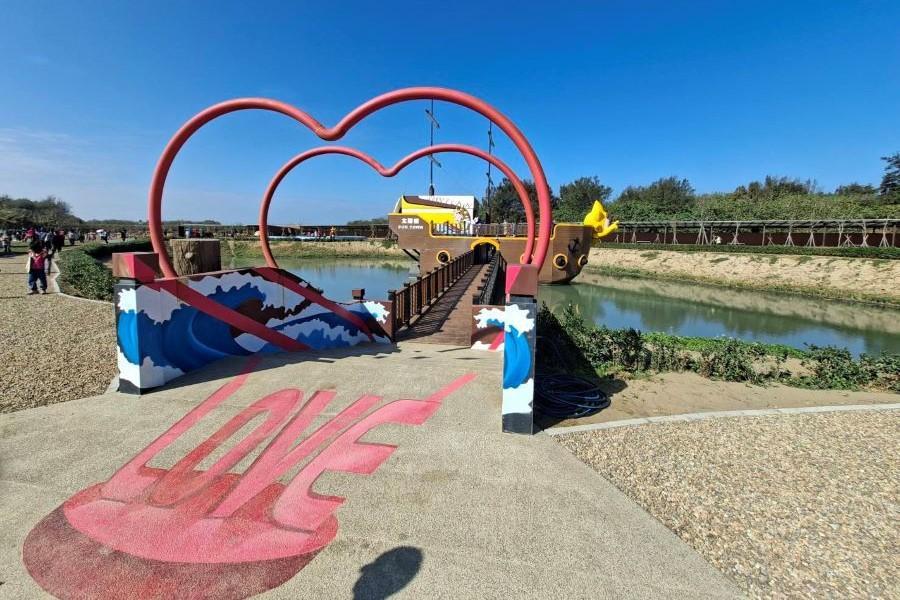 除了懷舊街景,園區還規劃了多元互動設施,包括文創森林 3D 與 VR 探索館,讓遊客體驗科技結合藝術的沉浸式互動。最大亮點莫過於中央那艘卡哇伊風格的大船「太陽號」,搭配 LOVE 彩繪與愛心拱門,瞬間成為情侶約會、親子同遊的熱門打卡點。園區也不斷邀請藝術家進駐,打造專屬展覽與文創商品,讓旅程更具文化氣息。