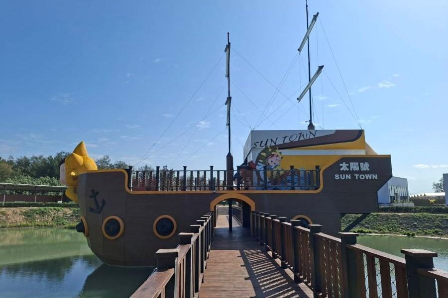 海盜船為大型景觀裝置藝術,融入遊樂與拍照功能,成為園區內顯眼地標之一,增添遊客體驗趣味,一旁設有環池人行步道、親子休憩沙坑。