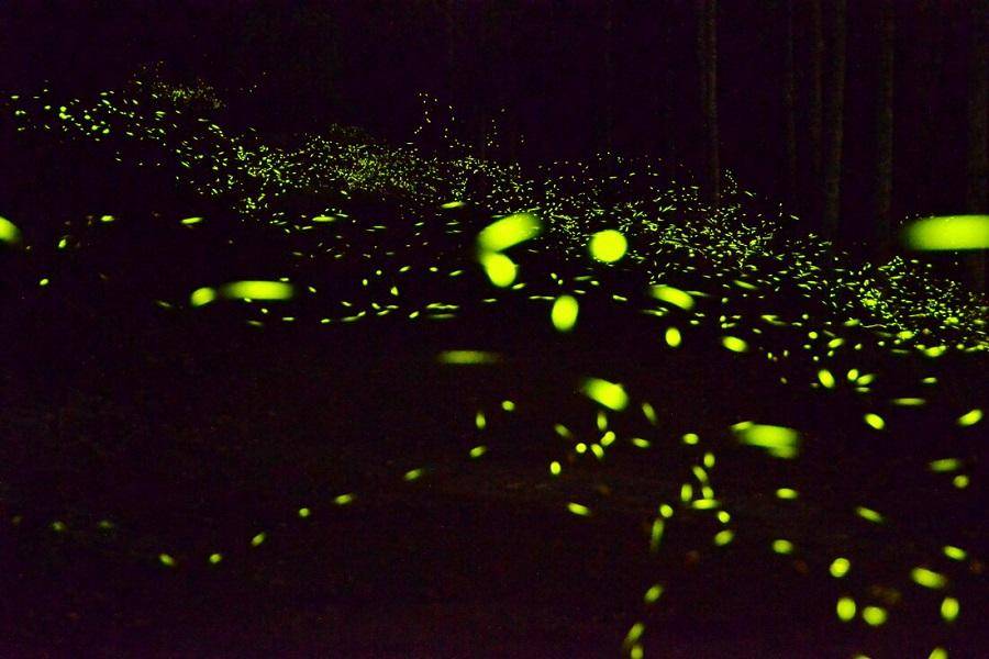 每年的4-5月間皆可見到不同種類的螢火蟲,包括黑翅螢、黃綠螢、黃胸黑翅螢、紅胸黑翅螢等10種左右。閃爍不停的小燈籠在空中飛舞,點綴著寧靜的茶園,也替昏暗的夜色增添不少浪漫氣氛。為推廣自然教育及生態維護,每年皆會舉辦賞螢活動,透過專家詳細解說螢火蟲的生態,讓民眾在欣賞漫天飛螢時,更能小心愛護這種美麗而脆弱的夜間精靈。