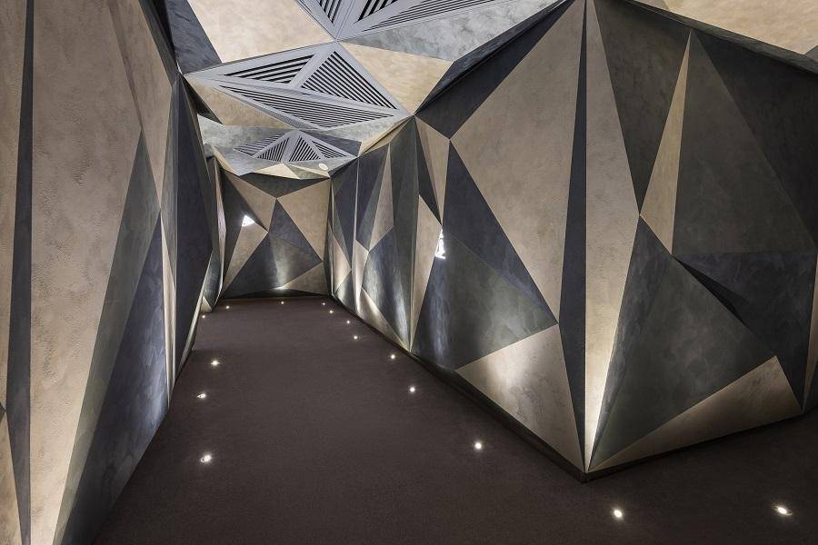 連通大廳與梯廳的通道,則是以幾何造型的洞穴隧道來引領旅人,讓你進入酒店,就像是踏入整座阿里山森林。
