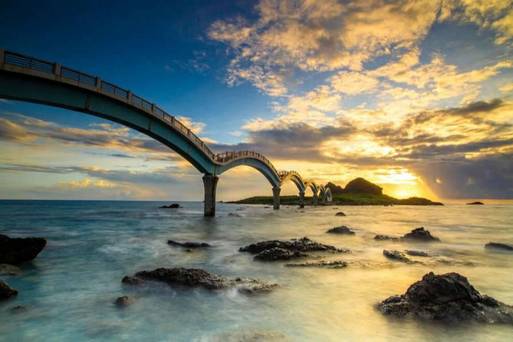 三仙台跨海步橋全長近400公尺,由八座拱橋串聯而成,紅灰色橋身橫臥海面,宛如長龍臥波,成為三仙台最具指標性的景觀。漫步其上,橋身雖長卻不費力,海風拂面,陽光映照海面,清澈水中魚影可見,令人心曠神怡。1987年完工時,設計師李華棟先生兼顧生態保護,將橋身設計成八段起伏階梯,既阻止車輛直接駛入,又減少遊客對環境的衝擊。步橋不僅連接陸地與岬角,更將自然美景與環境友善理念完美融合。