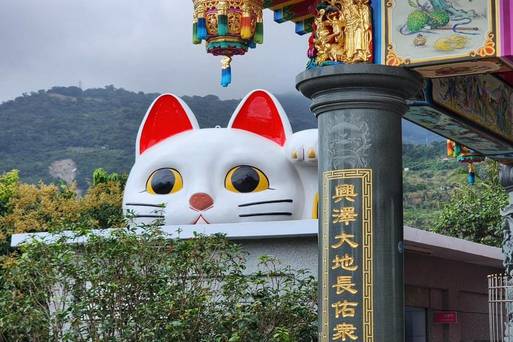 台東一座百年歷史土地公廟,在2025年初驚喜變成全台唯一「招財貓土地公廟」!除了原先「台版雷門」巨型紅燈籠,現在還有巨型招財貓,保證快門按不停!全台唯一「招財貓土地公廟」,就在台東太麻里福興宮,莊嚴肅穆的宮廟搭配上可愛的招財大貓,兩相輝映下,讓百年土地公廟瞬間變得超童趣可愛,連信徒與旅客也都被巨型招財貓的可愛萌樣征服了。IG-tintinghi